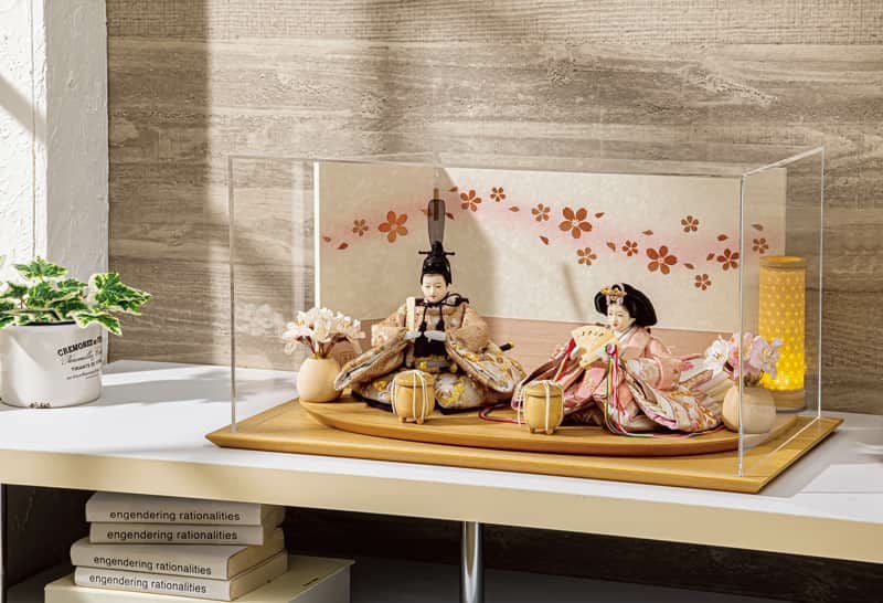 平飾りの雛人形には珍しく、アクリルケースが付属するこちらのお雛様。