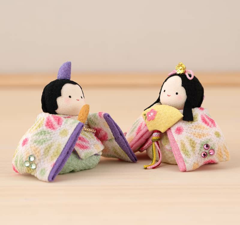 あたたかみのあるちりめん素材のちいさなお雛様で、楽しいお節句をお過ごしください。