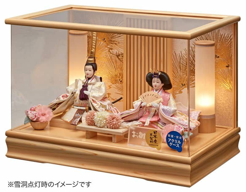 木目の美しい桧のケースを用いて仕立てた、親王飾りのご紹介です。