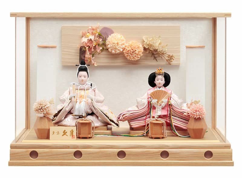 ケース背景の、可愛らしい花束のフラワーアレンジが、明るく楽し気に親王を引き立てていますね。