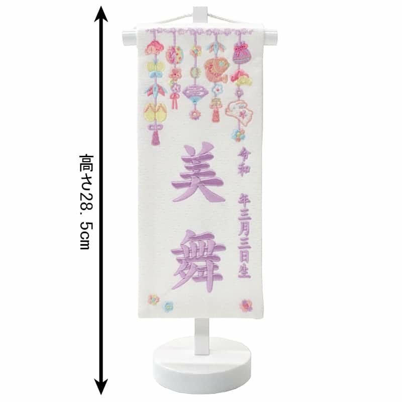 【送料無料】最安値に挑戦!2026年度新作 雛人形 雛人形 ひな人形 名前旗 女の子 総刺繍 つるし雛 パープル(豆)パープル刺繍 生年月日 名前入代込 白塗スタンド付 【2026年度新作】 3ad-trs-pu