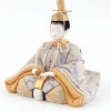 グレイッシュカラーを基調に仕立てた飾り台屏風も、装飾を控えることでお人形の存在感をしっかりと引き立てています。