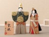 両袖を広げたお殿様と、前を合わせた立ち姿のお姫様は、神雛(紙雛)とも呼ばれ、雛人形のルーツともいわれる伝統的なスタイルのお雛様です。