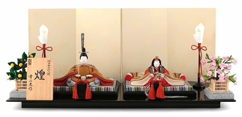 (付属)黒艶塗飾台、江戸唐紙屏風、燭台、貝桶、桜橘、桐箱入