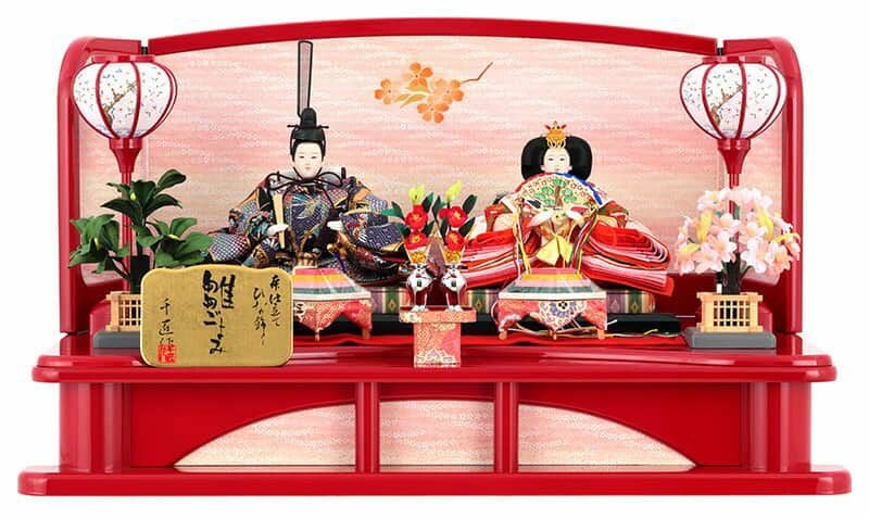 お部屋の雰囲気がぱっと華やぐような、鮮やかな色合いの飾り台が特徴的な親王飾りです。