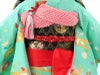若草色と橙色の鮮やかな配色でまとめられた衣装には、優美な花々が描かれ、日本の美しさを象徴しているかのような佇まいです。