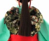 市松人形としてはめずらしいポニーテルの髪型で、現代的で愛嬌のある人形です。