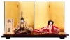 高級感あふれる艶やかな金屏風に、晴れやかな表情のお人形をあわせたシンプルな親王飾りです。