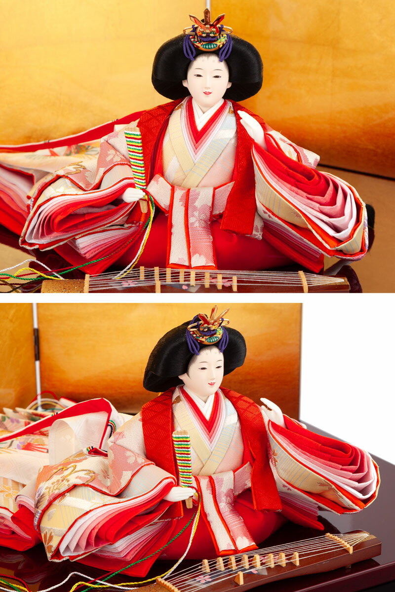 琴と琵琶を演奏しているかのような、動きのある珍しいデザインの雛飾りですので、他にはない商品をお求めのお客様にもおすすめの一品です。