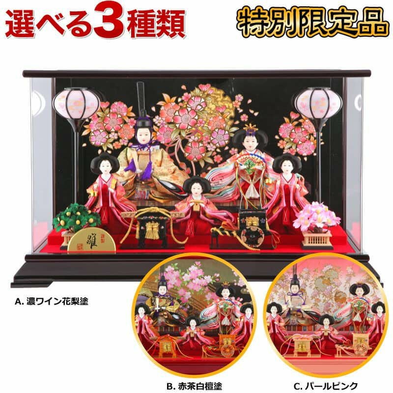 【送料無料】最安値に挑戦!2026年度新作 雛人形 雛人形 ひな人形 雛 ケース飾り 五人飾り 清玉作 小三五五人 アクリルケース 【2026年度新作】【選べる3色】 h293-sg-435