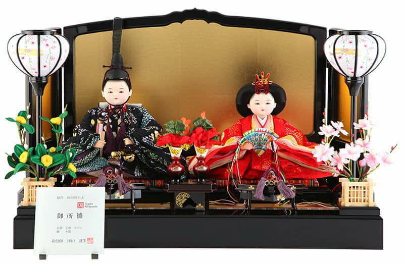 経済産業大臣指定伝統工芸士である三代目津田蓬生による着付けと、杉田明十志原作の頭をあわせた、確かなつくりの「御所雛」親王平飾りです。