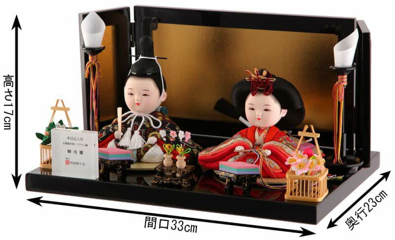 間口33cmと大変コンパクトながら、とても見応えがあり飾り栄えのするお雛様で、ぜひお子様の初節句をお祝いください。