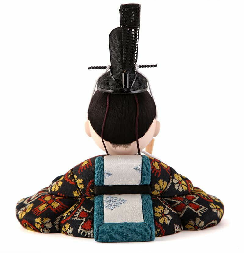 ふっくらとまあるいお顔が特徴のおぼこ雛に、異国情緒感じる正絹ゴブラン織の衣裳を丁寧に木目込みました。