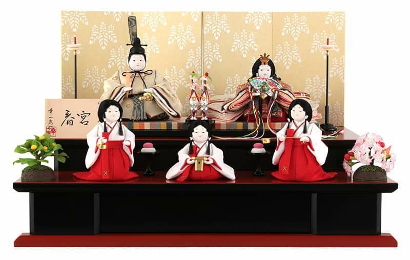 紅白の衣裳を身にまとった巫女さん姿の三人官女も、可愛らしさにあふれています。