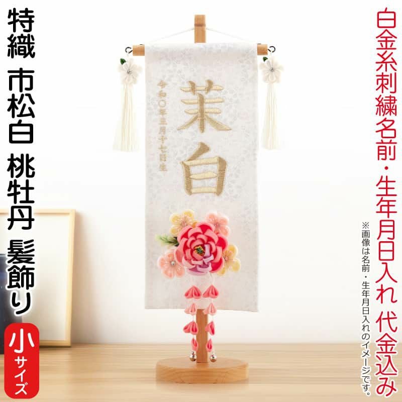 【送料無料】最安値に挑戦!2026年度新作 雛人形 雛人形 村上鯉幟 名前旗 女の子 特織 市松 白(小)白金糸刺繍 名前 生年月日入れ代込 凛の花白飾り 3-59桃牡丹髪飾り 【2026年度新作】 mk-name-3-653-366-3-59