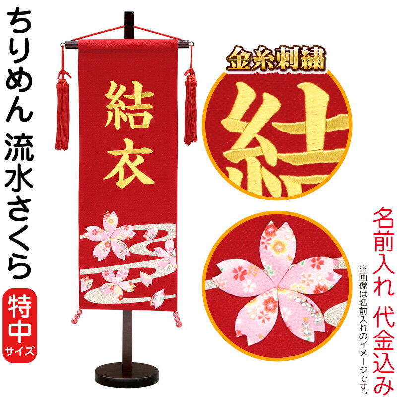 【送料無料】最安値に挑戦!2024年度新作 雛人形 名前旗 雛人形 村上鯉幟 室内飾り ちりめん (特中) 流水さくら 赤房 スタンド付 金糸刺繍 名前入れ代込み 【2024年度新作】 mk-name-3-156-270
