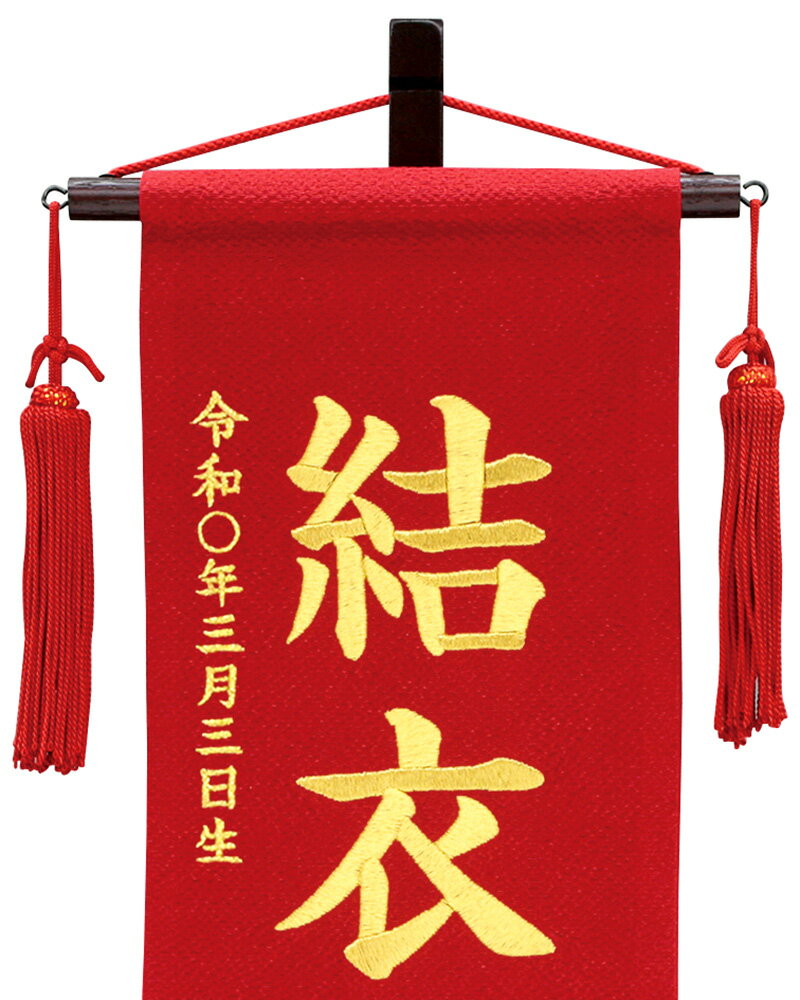 お子様のお名前と生年月日を、豪華な金糸刺繍でお入れします。