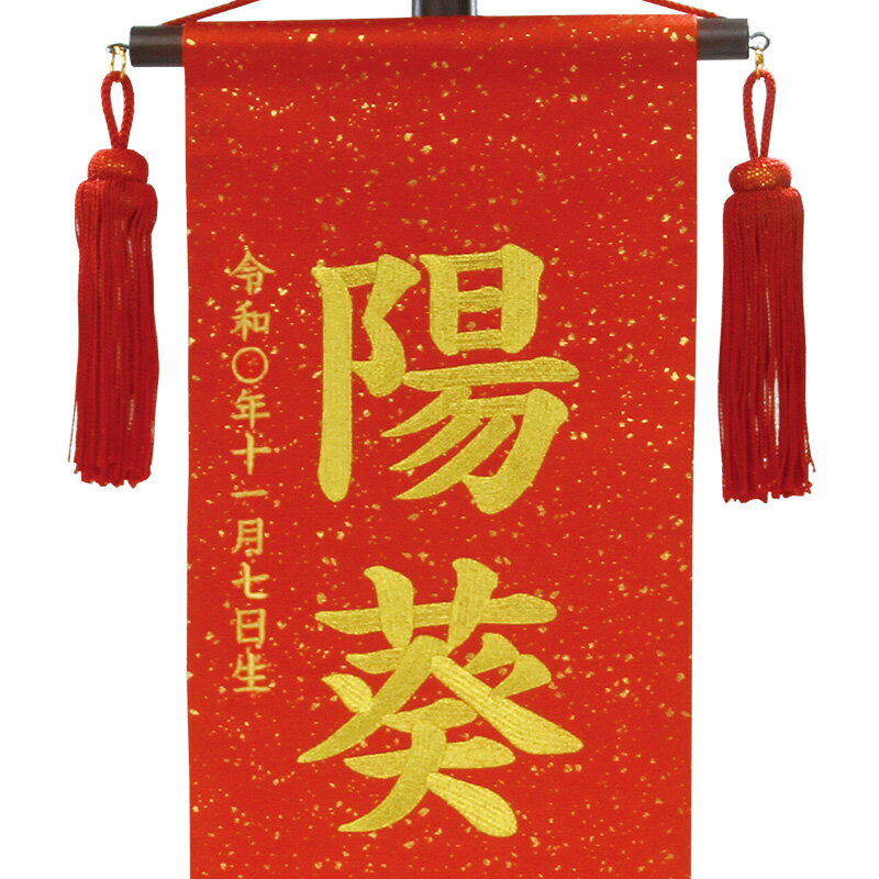 お子様のお名前と生年月日を、豪華な金糸刺繍でお入れします。