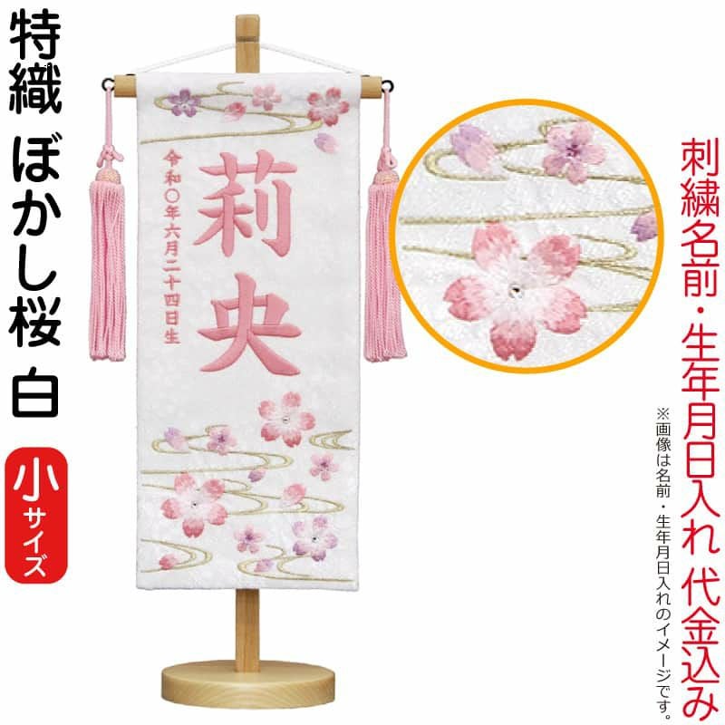 【送料無料】最安値に挑戦!2026年度新作 雛人形 雛人形 村上鯉幟 名前旗 女の子 特織 ぼかし桜 白(小)薄桃糸刺繍 名前 生年月日入れ代込み 桃房 【2026年度新作】 mk-name-3-206-951