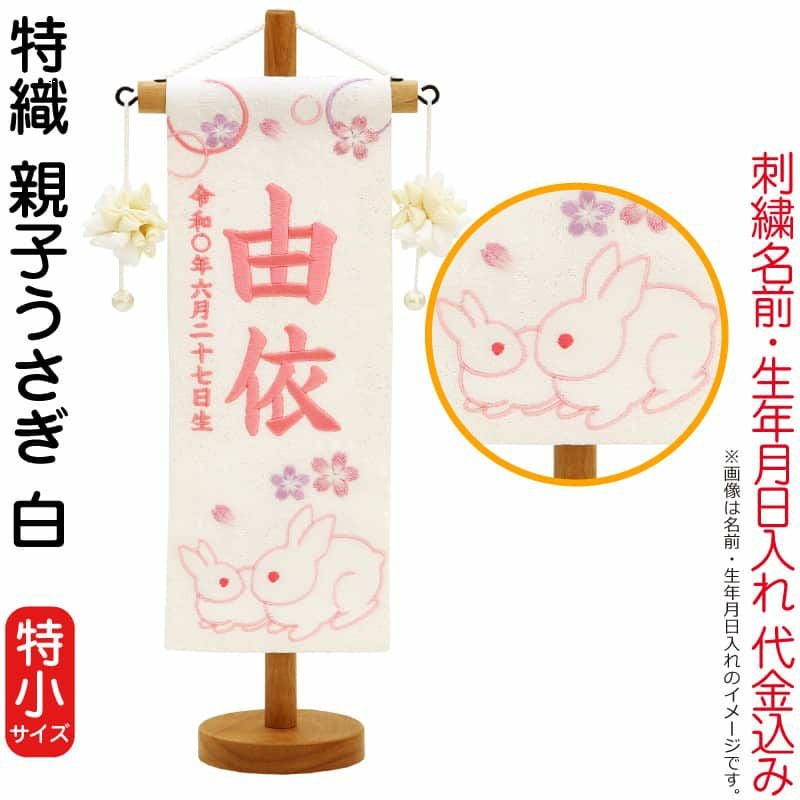 【送料無料】最安値に挑戦!2026年度新作 雛人形 雛人形 村上鯉幟 名前旗 女の子 特織 親子うさぎ 白(特小)薄桃糸刺繍 名前 生年月日入れ代込み きなり摘みマリ飾り 【2026年度新作】 mk-name-3-650-860