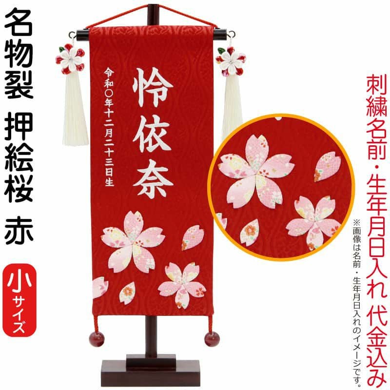 【送料無料】最安値に挑戦!2026年度新作 雛人形 雛人形 村上鯉幟 名前旗 女の子 名物裂 押絵桜 赤(小)白糸刺繍 名前 生年月日入れ代込み 凛の花赤飾り 【2026年度新作】 mk-name-3-653-267