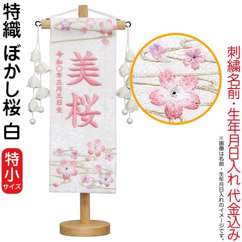 【送料無料】最安値に挑戦!2026年度新作 雛人形 雛人形 村上鯉幟 名前旗 女の子 特織 ぼかし桜 白(特小)薄桃糸刺繍 名前 生年月日入れ代込み 花ひらく白飾り 【2026年度新作】 mk-name-3-653-281