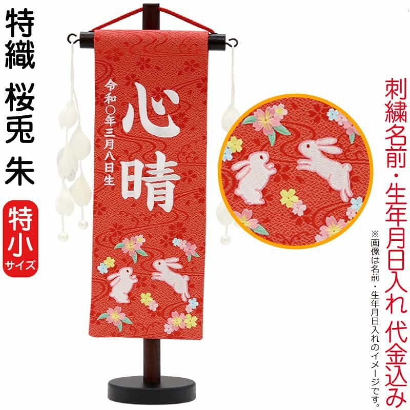 【送料無料】最安値に挑戦!2026年度新作 雛人形 雛人形 村上鯉幟 名前旗 女の子 特織 桜兎 朱(特小)白糸刺繍 名前 生年月日入れ代込み つぼみパール白飾り 【2026年度新作】 mk-name-3-653-304