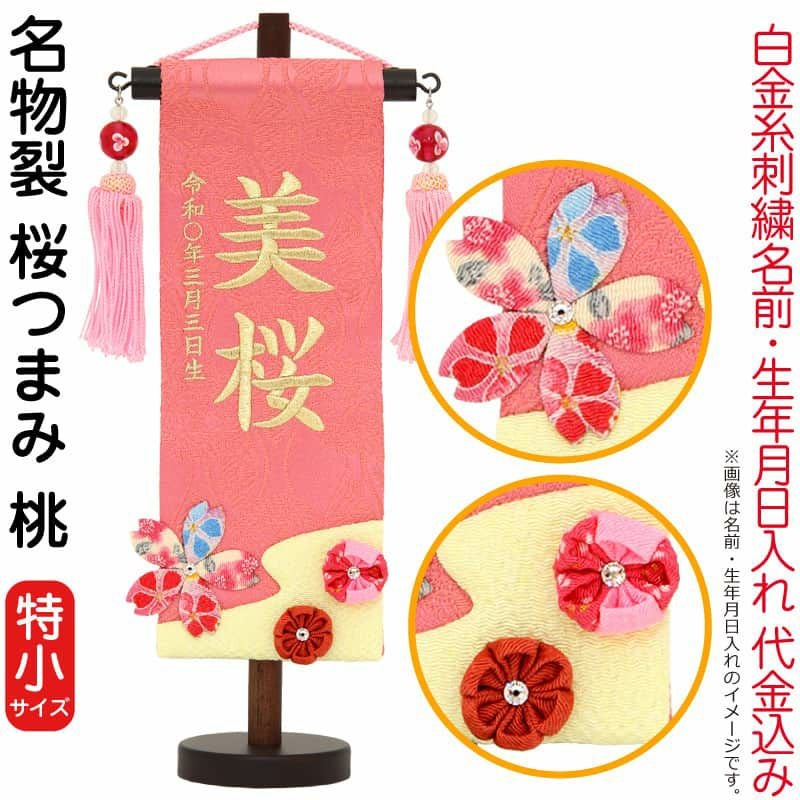 【送料無料】最安値に挑戦!2026年度新作 雛人形 雛人形 村上鯉幟 名前旗 女の子 名物裂 桜つまみ 桃(特小)白金糸刺繍 名前 生年月日入れ代込み 水中花桃房 【2026年度新作】 mk-name-3-660-609
