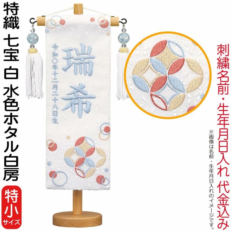 【送料無料】最安値に挑戦!2026年度新作 雛人形 雛人形 五月人形 村上鯉幟 名前旗 女の子 男の子 特織 七宝 白(特小)水色糸刺繍 名前 生年月日入れ代込み 水色ホタル白房 【2026年度新作】 mk-name-3-660-647