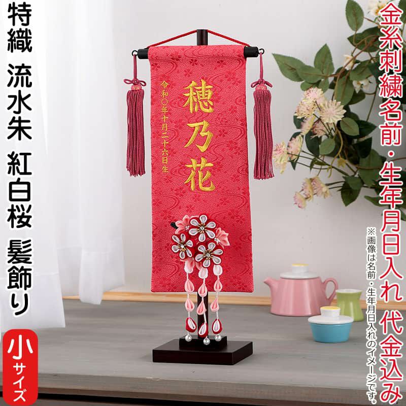 【送料無料】最安値に挑戦!2024年度新作 雛人形 名前旗 雛人形 村上鯉幟 室内飾り 特織 流水(小)朱 3-51 紅白桜 髪飾り 濃桃房 スタンド付 金糸刺繍 生年月日 名前入代込 【2024年度新作】 mk-name-3-194-883-195-323