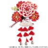 つまみ細工は、縁起が良い花として知られる芍薬をモチーフに、ちりめん生地で仕立てられています。