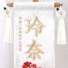 お子様のお名前と生年月日を、豪華な白金糸刺繍でお入れします。