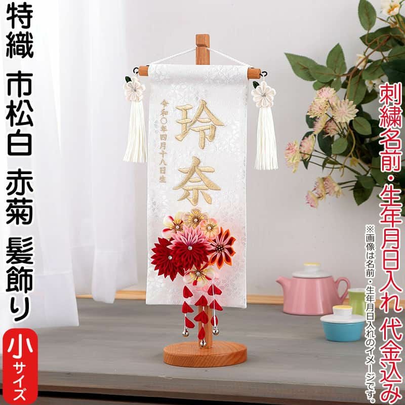 【送料無料】最安値に挑戦!2026年度新作 雛人形 雛人形 村上鯉幟 名前旗 女の子 特織 市松 白(小)白金糸刺繍 名前 生年月日入れ代込 凛の花白飾り 3-57赤菊髪飾り 【2026年度新作】 mk-name-3-653-366-3-57