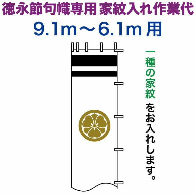 他の画像を見る 【送料無料】最安値に挑戦!2026年度新作 鯉のぼり 武者絵のぼり 徳永 武者幟 9.1~6.1m用 家紋入れ 二種+名前入れ 徳永専用 家紋・名前入れ作業代 【2026年度新作】 toku-kamon-n4-91-61 メーカー希望小売価格 ¥ 33,300 (税込) ¥ 26,640 税込 カートに入れる お気に入りに登録する