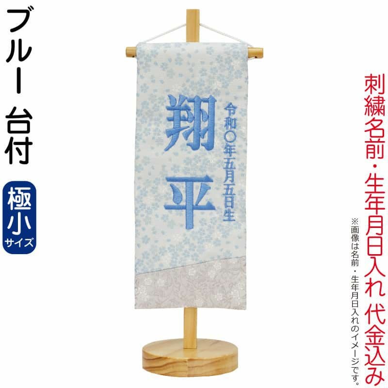 【送料無料】最安値に挑戦!2026年度新作 五月人形 五月人形 名前旗 男の子 ブルー(極小)刺繍 名前+生年月日入れ 代金込み スタンド付 【2026年度新作】 h085-fz-5620-56-511f
