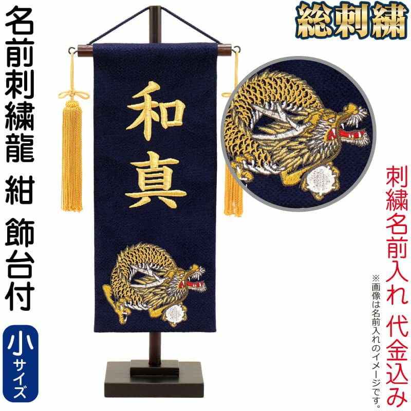 【送料無料】最安値に挑戦!年度新作 五月人形 五月人形 名前旗 タペストリー 座敷旗 名前刺繍龍 紺 (小) 台付 名前入れ 代金込み 【2024年度新作】 h065-fz-5620-85-001