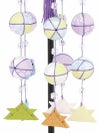 角がないことから「お子様に厄が当たらない」とされる鞠のお飾りを、パステルカラーを基調に仕立てました。
