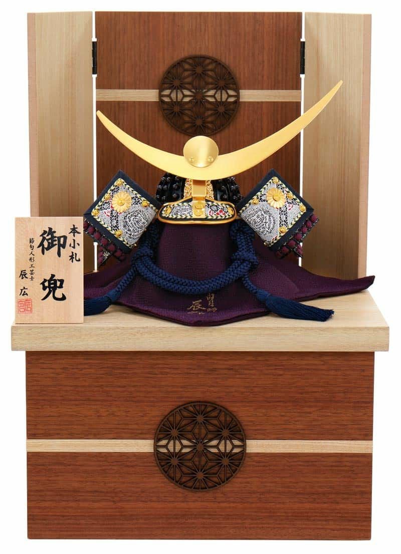 名匠・辰広作のコンパクトな兜収納飾りです。