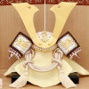 白木の質感を生かしたナチュラルテイストな飾り台屏風は、和洋室どちらにも馴染み、お部屋の雰囲気を損なうことなくお飾りいただけます。吉祥文様としても知られる麻の葉文様の意匠も、お節句にふさわしい、おめでたい雰囲気を引き立てますね。