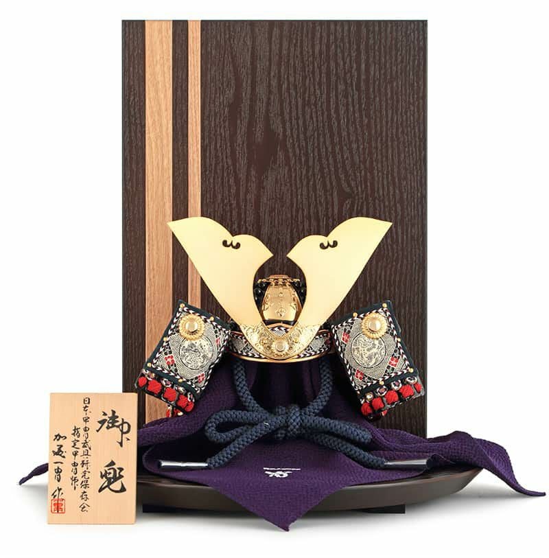 日本の名工 甲冑師 加藤一冑(かとういっちゅう)作の、コンパクトな1/4兜飾りです。