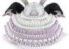 パステルカラーの威し糸が印象的な兜は、牡丹の彫金細工が随所にあしらわれ、コンパクトな作りでありながらスタイリッシュで高級感あふれる仕上がりに。