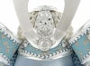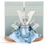 シルバーを基調に仕立てたスタイリッシュな兜は、牡丹の彫金細工が随所にあしらわれ、細部まで丁寧に作られています。
