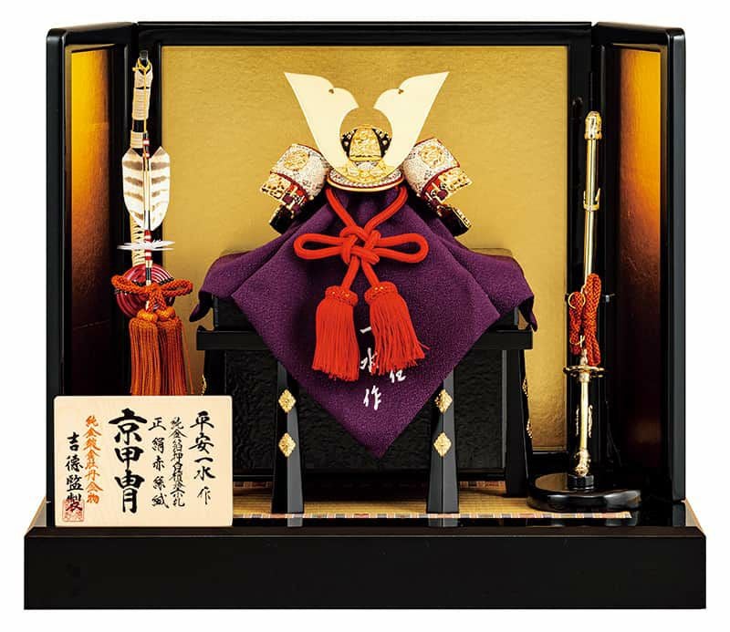 創業正徳元年(1711)、江戸で最古の人形の老舗、吉徳監製、平安一水作の兜飾りです。