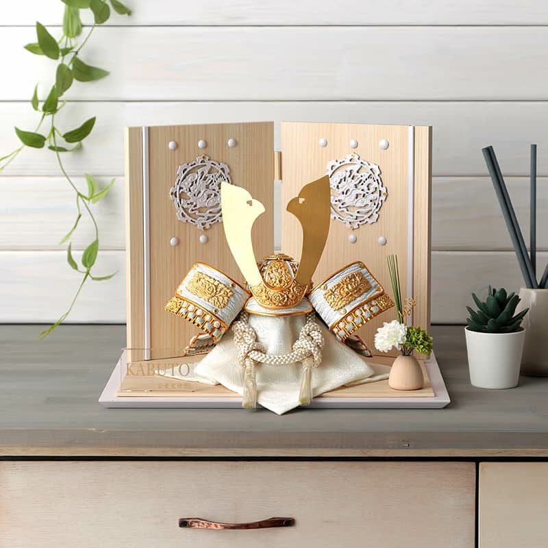 アイボリーを基調とした兜は、優しく清廉な印象ですね。