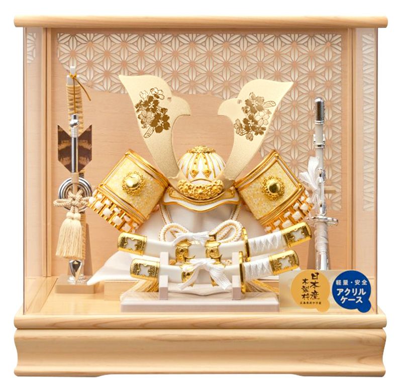 ケース背景を落ち着いた風合いで仕立てることで、気品あふれる兜がより一層引き立つ仕上がりとなっています。
