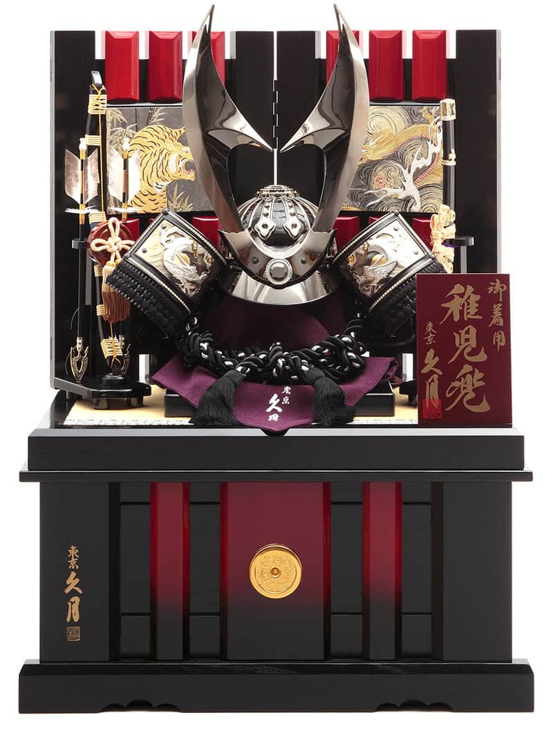 【送料無料】最安値に挑戦!2026年度新作 五月人形 五月人形 コンパクト 久月 着用 兜収納飾り 兜飾り 稚児兜 黒糸縅 25号 【2026年度新作】 h085-k-31026 D-52