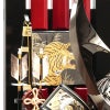 吹返しには立身出世の象徴とされる龍の彫金、屏風には勇ましい龍虎の彫金が施され、迫力あふれる仕上がりとなっております。