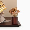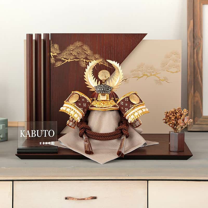 兜の鉢は透明感のある飴色が美しく、オークの飾り台や針松を繊細に描いた屏風との相性もバッチリ。サイズを抑えつつ、全体をあたたかみのあるブラウンカラーで統一したおしゃれで存在感のある一式です。ぜひご検討ください。