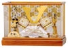 木目を生かして家具調に仕立てたケースの背景には、市松文様に麻の葉文様を重ねた図案がデザインされ、吉祥の趣あふれる仕上がりに。