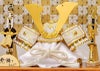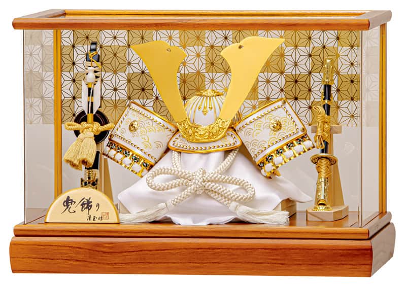 白色と金色を基調とした兜は、清廉かつ華やかな雰囲気が魅力的ですね。